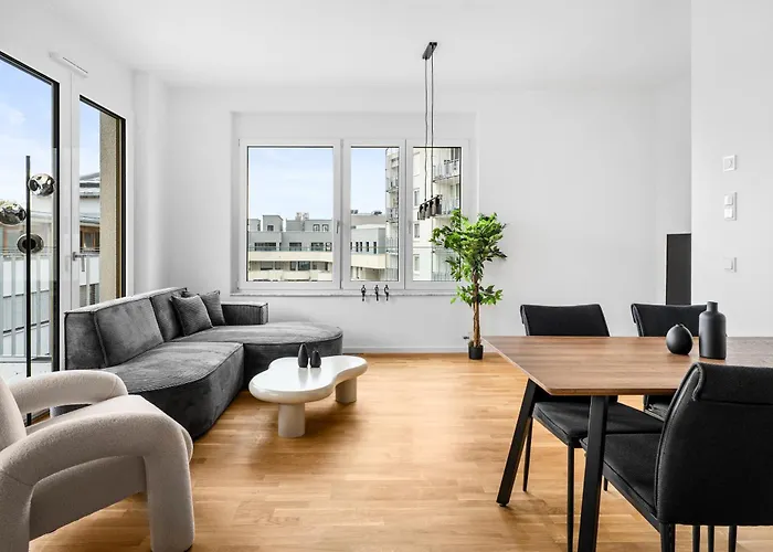 ベッドルーム1室のEXQUIS Iconic 2BR Apartment ALESSI I Balcony I Mercedes & US Army I Parking I Stuttgart ベーブリンゲンはベーブリンゲン鉄道駅から450メートル離れた所で、マイレンヴェルク高級車博物館から歩いて10分くらいの場所にあります。 ビジネスとレジャーの両方でWi-Fiを利用することができます。